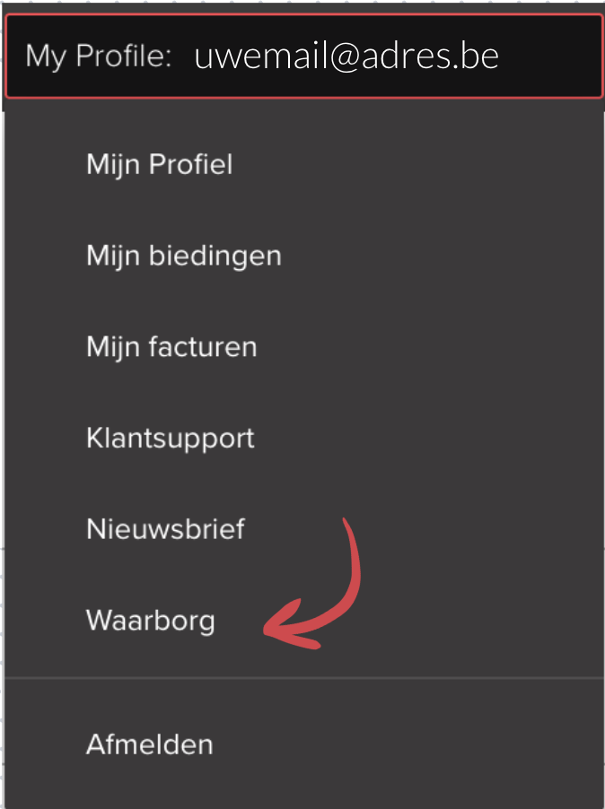 2. Klik bovenaan op 'My Profile' en kies 'Waarborg' in het drop-downmenu of klik op deze link